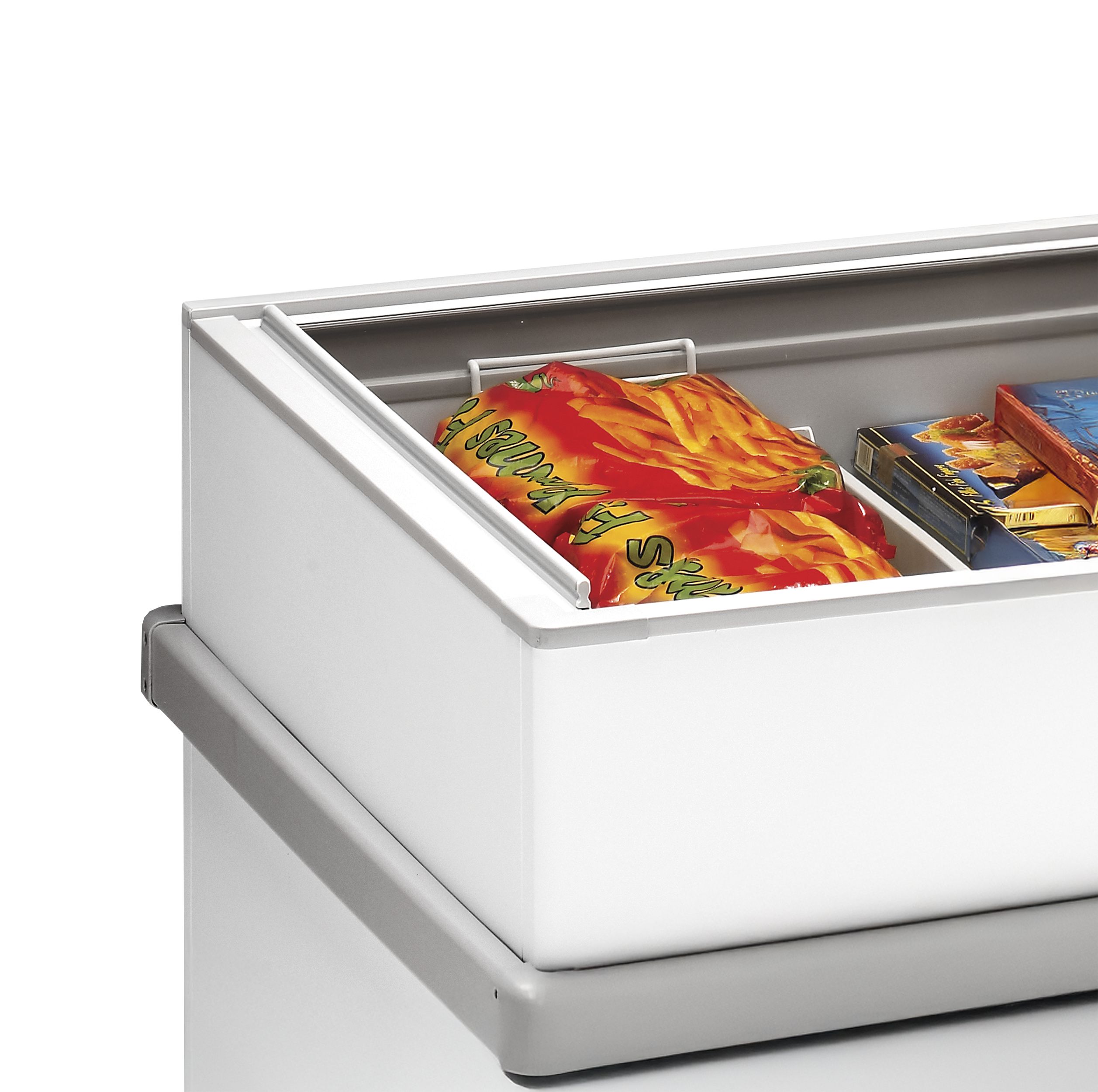 The SSF range of supermarket freezers is an economic choice and offers great value for money. It is available in several sizes. The flat sliding lids are with tempered glass and allow for a nice overview of the frozen goods inside. The freezer includes baskets and bumper bars. Ideal for island installations.