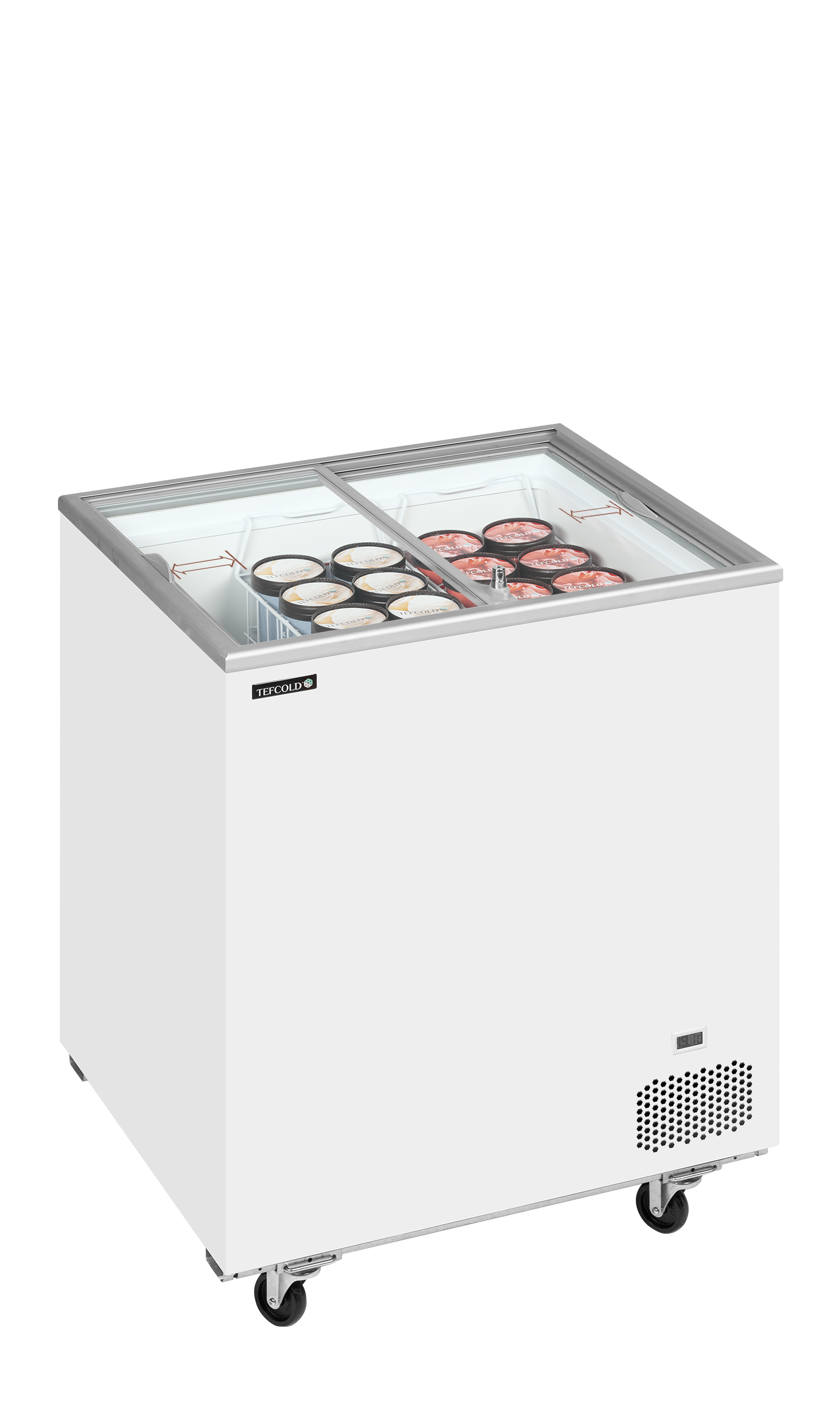 IC-standardserien med glassfrysar innehåller stabila och välbyggda enheter till ett konkurrenskraftigt pris. De är ett utmärkt alternativ för t.ex. nystartade företag och säsongsförsäljning. De är försedda med platta skjutlock av glas så att produkterna syns och en hel uppsättning korgar som kan fyllas med god kulglass och pinnglass. Enheten kan enkelt flyttas tack vare tåliga svänghjul för tung drift.