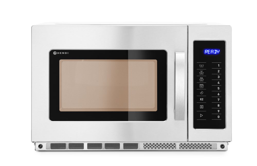 Den programmerbara mikrovågsugnen HENDI är en modern apparat designad för snabb uppvärmning och upptining av rätter. Perfekt för små snabbmatsrestauranger, barer, bensinstationer, cafeterior eller kök i kontorsbyggnader, hotell eller pensionat.